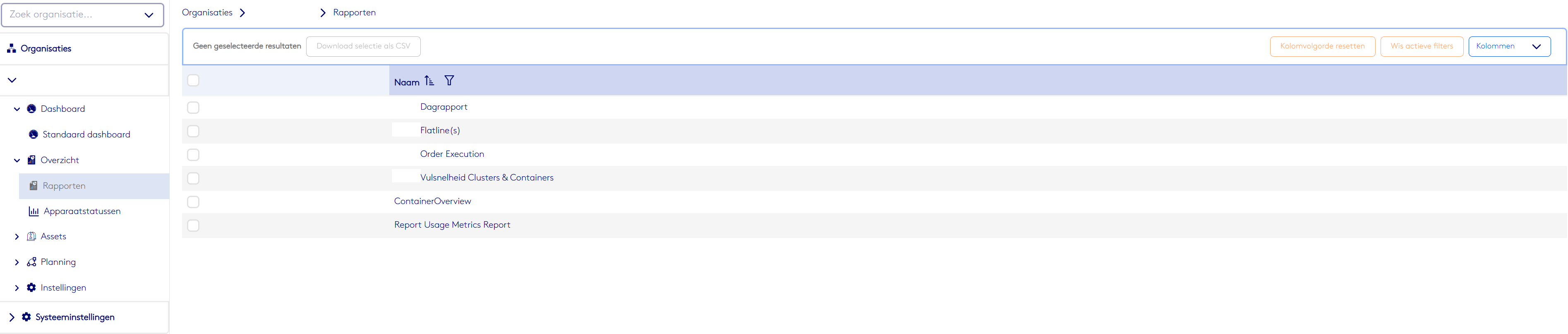 Sur la page Rapports, vous trouverez un aperçu de tous les rapports disponibles au sein de votre organisation. Chaque rapport se concentre sur un aspect spécifique du processus opérationnel.