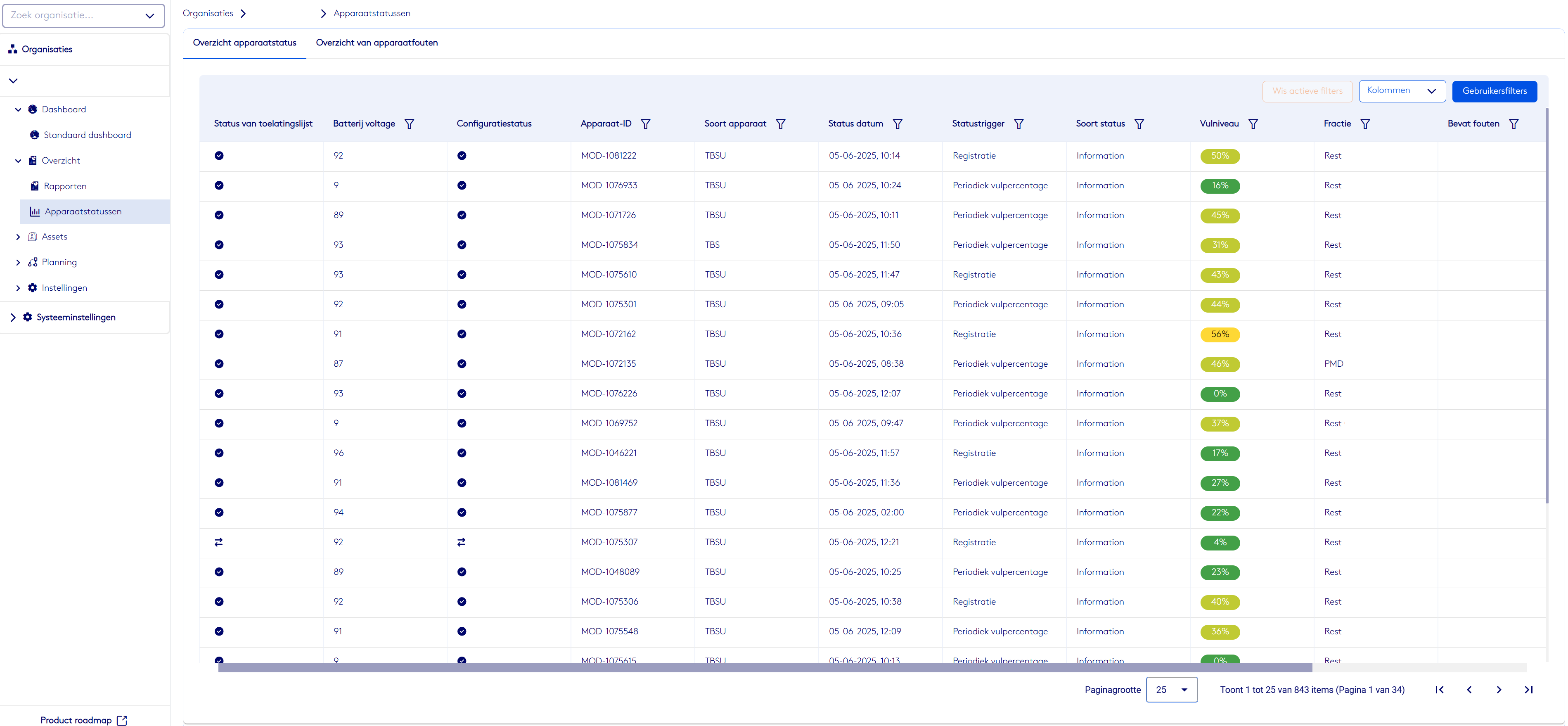 Denne fanen gir innsikt i den generelle statusen til alle enheter. Du ser blant annet:
