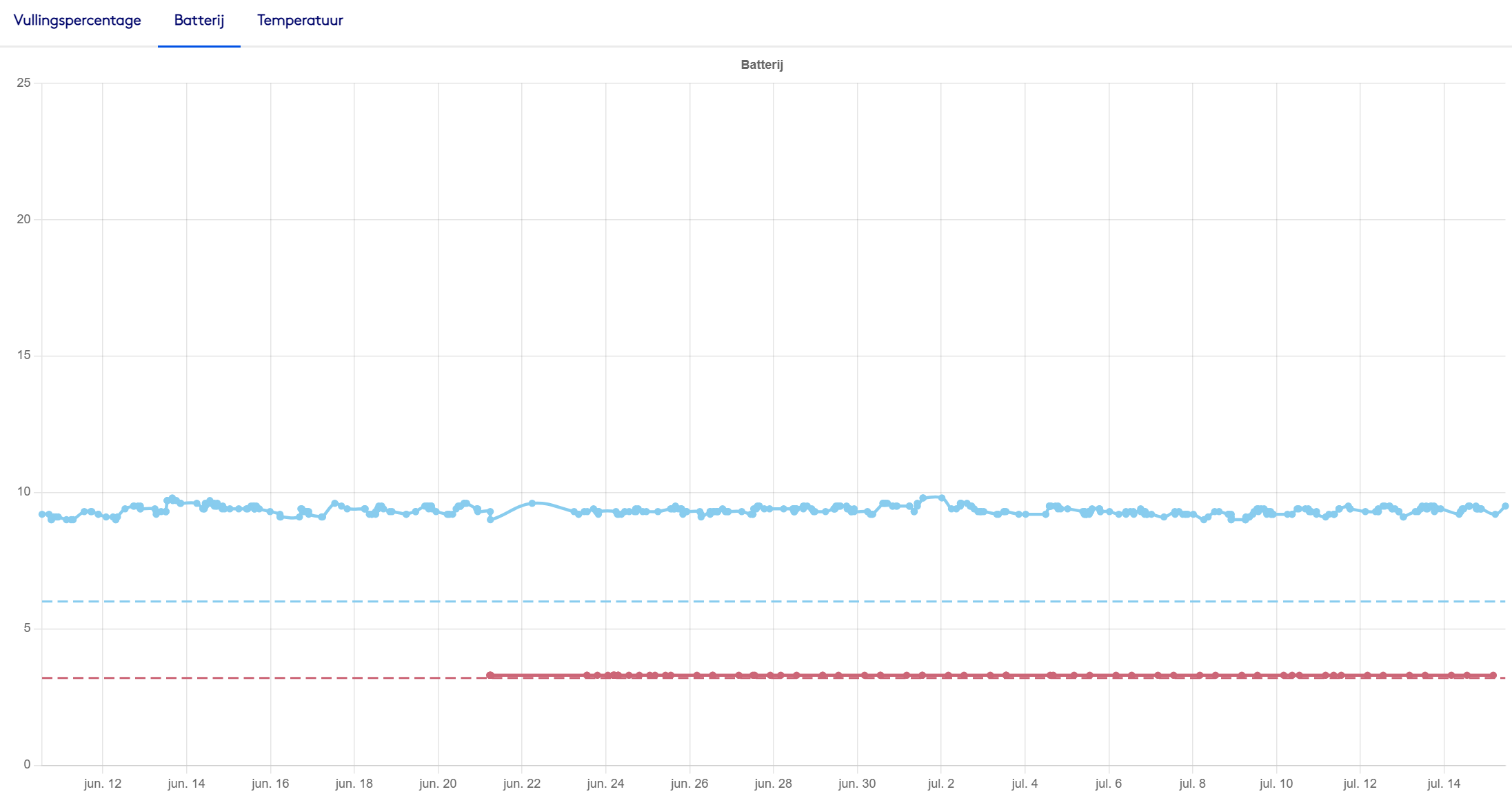 Viser utviklingen av batteristatusen til den tilknyttede enheten. Viktig for vedlikeholdsplanlegging.