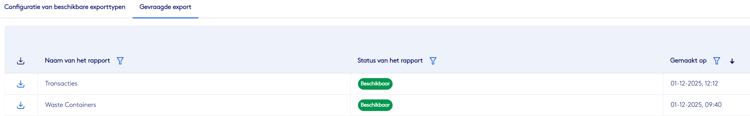 Denne nye filen vil da være tilgjengelig under Etterspurt eksport. Avhengig av filens størrelse kan det ta litt tid før filen er klar til nedlasting.
